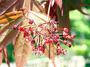 春は暗紫色、夏は深緑色、秋は紫紅色になる落葉中高木です。
