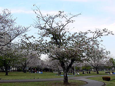 ソメイヨシノに比べて、花びらはかなり白い色をしています。