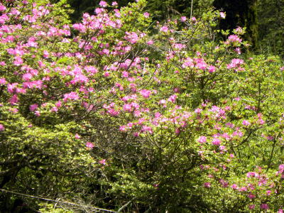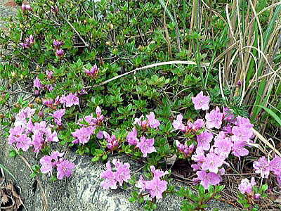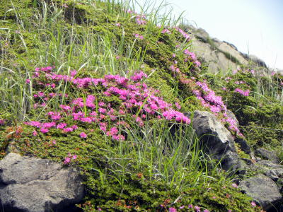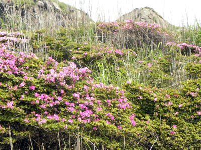 山頂以外では、高さ1m内外の低木ですが、路傍などには地を這って咲いているミヤマキリシマが多いようです。