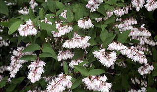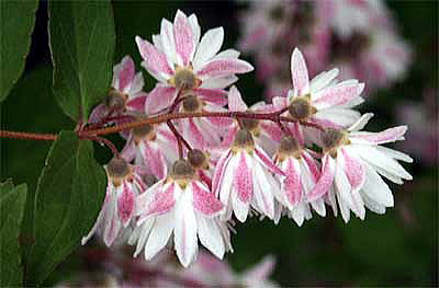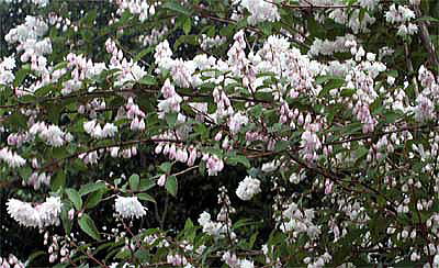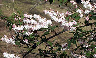サラサウツギは、八重咲きで、芳香のある下向きの花を沢山咲かせます。
