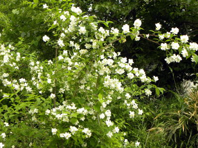 花期を待ち、真っ白い花をたくさん咲かせたバイカウツギを撮影しましたので、写真を追加しました。