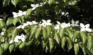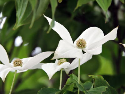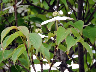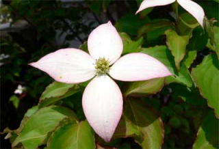 【4月の花】のページで紹介したハナミズキと同じ仲間でよく似ていますが、ハナミズキは、花びらのようにみえる苞の先端が凹んでいます。