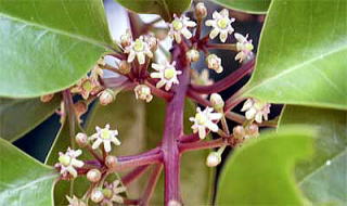 雌雄異株で、新枝の葉腋に5〜6数性の花をつけますが、雄花か雌花か、花だけではなかなか分かりません。