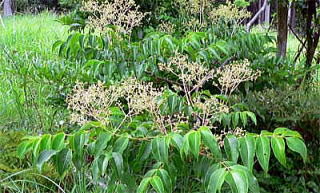 秋から冬にかけて、長い間、黒い光沢のある種子を覗かせた赤い果実が目立ちます。