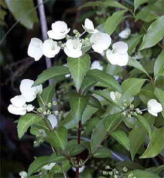 ガクウツギは、花序が直径8〜10pと、コガクウツギの3〜5pより大きく、葉の鋸歯は、ガクウツギは微鋸歯、コガクウツギは荒い鋸歯、さらに、コガクウツギはいたるところにあるのに対して、ガクウツギは非常に少ないといわれていることなどから、コガクウツギと思います。