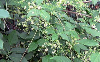 マユミやコマユミと違って、花序が長く垂れ下がり、小枝、葉、花が蔓のように絡まっていました。