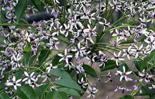 樹皮は暗紫色,枝を四方に広げ、葉は互生し枝先に集まります。
