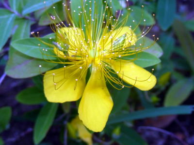 雄しべは、花弁より長く、5束に分かれる。花柱も5裂。 和名は、未央柳か美容柳で、花が美しいことと,葉の細いことをヤナギにたとえた名。