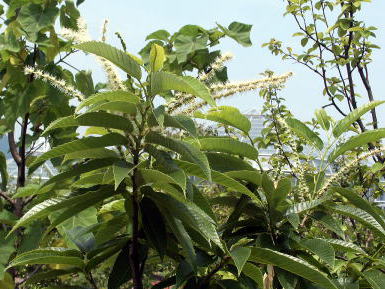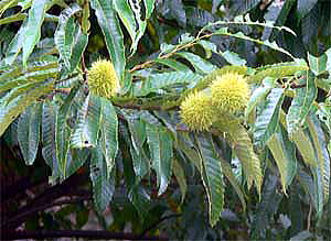 08年夏、まだ暑い陽ざしの中で、早くもクリが結実していましたので、写真を追加しました(5段目の2枚の写真)。