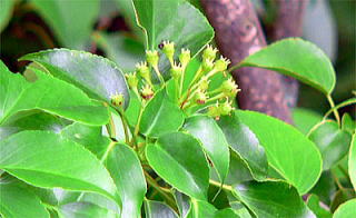 暖帯から温帯に分布、山中の崖に生える常緑高木です。