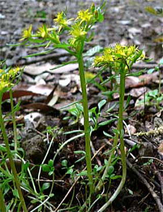 コモチマンネングサは、葉のわきに珠芽(ムカゴ)をつけているので、識別できます。