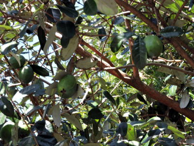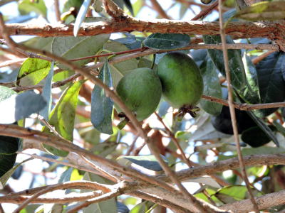 2014年11月、都城市の果樹園の庭に大きなフェイジョアの木があり、ちょうどたくさんの果実をつけていましたので、写真を追加しました(4〜5段目の3枚の写真)。