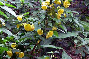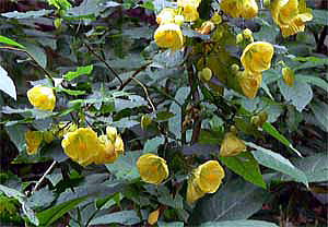県亜熱帯作物支場の『不思議の森』で、ハンカチノキを観察した折、透き通るような黄色い花を下向きに沢山咲かせている低木に出会いました。