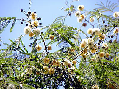 ギンネムは、南アメリカ原産の帰化植物で、寒さに弱く、沖縄等の一部の地域を除き、露地では育たないといわれていますが、さすが南国宮崎、このギンネムの大木は、たくさんの美しい花をつけていました。