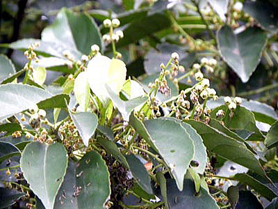 図らずも今回、法華岳公園で、接近して花も接写できるコバンモチの木を見つけました。