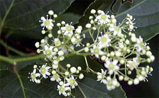 枝先に円錐花序を出して、細かな花を多数密につけます。