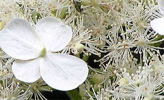 花は、初夏、がく片が花弁状の装飾花と多数の両性花があります。