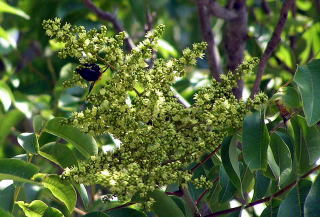 こどものくにの観察木の花が咲いたので、撮影しましたが、ムクロジは高木なので、望遠撮影で辛うじて花を撮影できました。