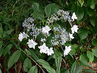 花は、夏に咲き,枝先に集まり,がく片4〜5枚からなる装飾花を周囲につける。