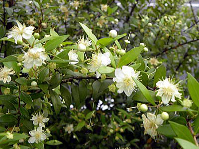 ギンバイカ フトモモ科 ギンバイカ属 別名:マートル、ギンコウバイ、ギンコウボク、イワイノキ
