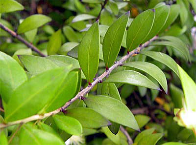 葉は、光沢がある楕円形、全縁で強い香がある。