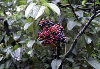 果実は、緑から赤くなり、翌年夏に黒く熟すのだそうです。