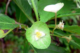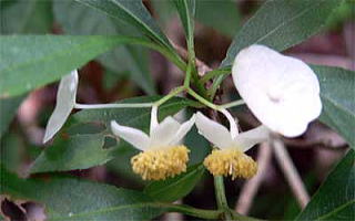 花は、夏、枝先に直径約2pの白い花をまばらに開きます。