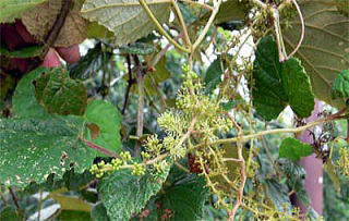 その後、秋口の9月初めにも、花をたくさん咲かせているエビヅルを見かけましたので、写真を追加しました。