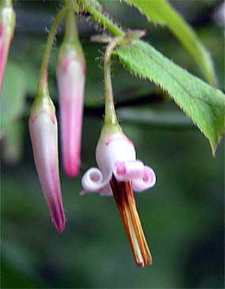 花は初夏、長さ1〜2cmの花柄に下垂して開きます。