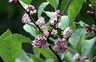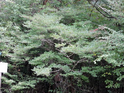 ウメモドキは、真っ赤な美しい実でお馴染みの落葉低木で、霧島えびの山中に見られ、また庭木や生花用に栽植されます。 写真は、ウメモドキとは葉や花序の様子が違うので、霧島に多いとされるイヌウメモドキと思います。 雌雄異株ですが、この木の秋の赤い果実は数年観察していますが、まだ確認できません。 雄株のようです。 さらに観察を続けます。 ウメモドキの果実は大きくはありませんが、晩秋から冬にかけて真赤に熟しますので、鉢植えなどで美しい果実を楽しんでいる人も多いようです。 ウメモドキの果実、ウメモドキの黄葉も別途掲載しました。