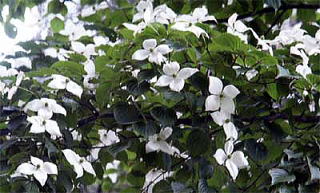 トピックス【5月の花】のページで、都城市の街路樹のヤマボウシを紹介しましたが、ほぼ2ヶ月遅れでえびの高原のヤマボウシが咲きました。