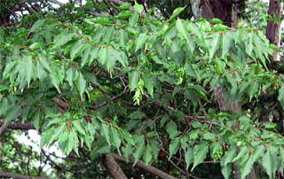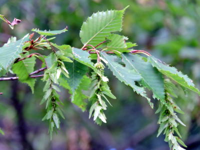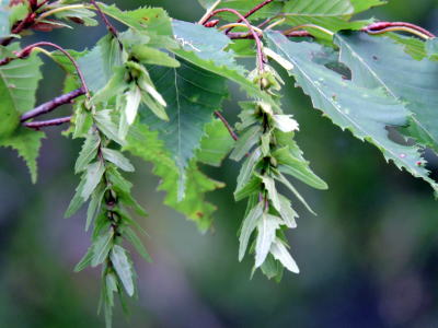 今までに撮影した木(2005年7月撮影)は容易には近づけないので、アカシデかイヌシデか分かりませんでしたが、8月に近づくことができる観察木を見つけました。