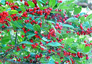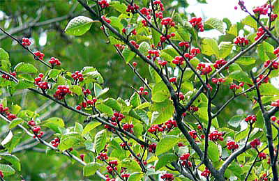 10月9日、えびの高原近くの30号線沿いで、赤い果実をビッシリとつけたアオハダを見つけました。