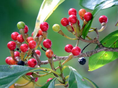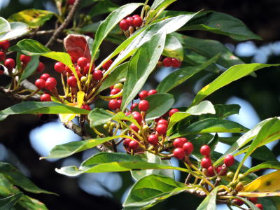 果実は赤熟しますが、他の赤くなりきらないで終わる木や、中間的に赤になって直ぐ黒熟する木に比べると、果実の赤色の美しさはカナクギノキが一番ではないでしょうか。