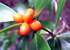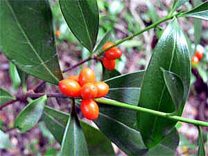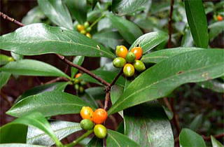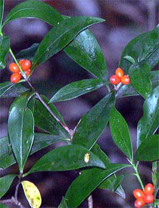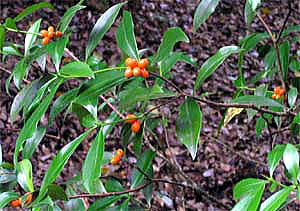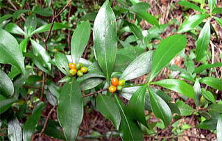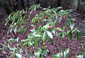 関東地方以西から琉球列島までの山地の林内に生える常緑の小低木で、高さ1m位。