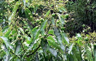 チシャノキは多くの木を観察しましたが、みやまきりしまロード高原町のチシャノキの大木は、7月上旬、果実と一緒にびっくりするような虫えいをたくさんつけていました。