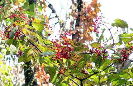 2008年11月に入り、えびの高原に向かう県道1号線で、美しく赤熟したコバノガマズミの果実を見かけましたので、写真を追加しました。