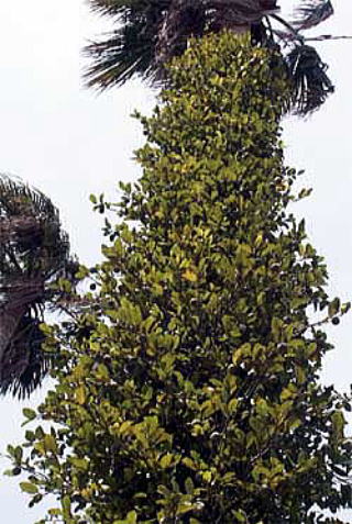 10mを超える高木のワシントンヤシやカナリーヤシ(フェニックス)に絡みついていました。