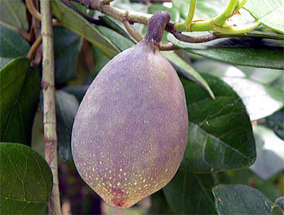 2010年5月末、紫色を帯びた落果前のオオイタビの花のうを撮影しました(下の2枚の写真)。