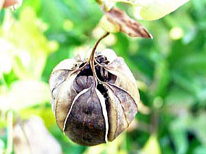 確かに、完熟した褐色の果実は、鈴のような形をしています。