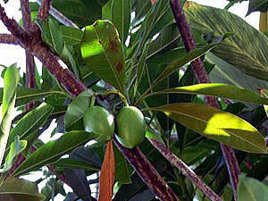 物産館の人に尋ねると、「さわらない方がいいですよ。」という返事なので、詳しく尋ねると、キョウチクトウ科のミフクラギと分かりました。