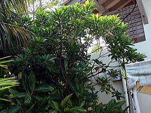 沖縄、インド、マレー半島などの海岸林に自生する常緑亜高木。