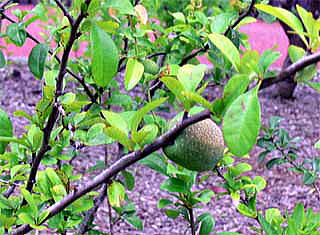 和名は、木になる瓜 『木瓜(もけ)』 の転訛したものといわれますが、果実の格好は、実に瓜によく似た形をしています。