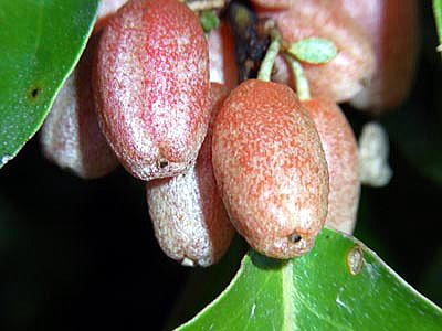 マルバグミを初めて撮影したのは、07年1月で、青い若い未熟な果実がついていました。