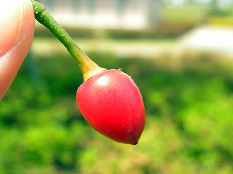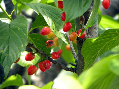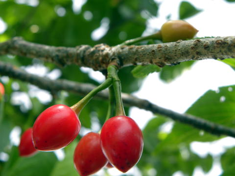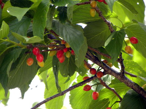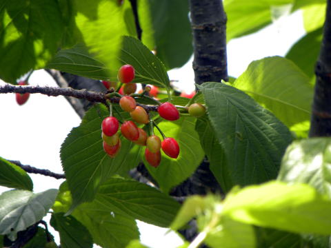 公園内に植栽された木ですが、ソメイヨシノのよりも大粒の美しい果実をつけていました。一見、サクランボのようです。