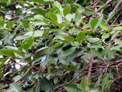 葉は対生し,質が厚く濃い緑色,光沢がある。葉脈は主脈のほかは目立たない。