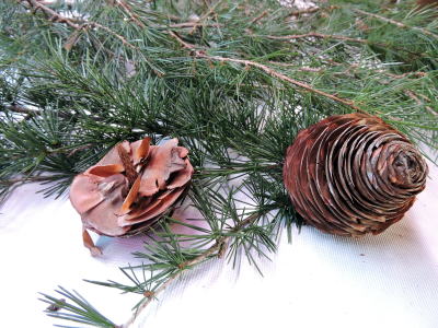 12月上旬、公園管理の都合でヒマラヤスギの枝の一部が除伐されることになり、同公園緑の相談所長さんの計らいで、球果を枝ごと回収していただきました。