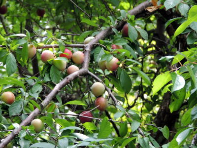 都城市早水公園の万葉植物園を散策中、果実をたくさんつけたスモモを見かけました。