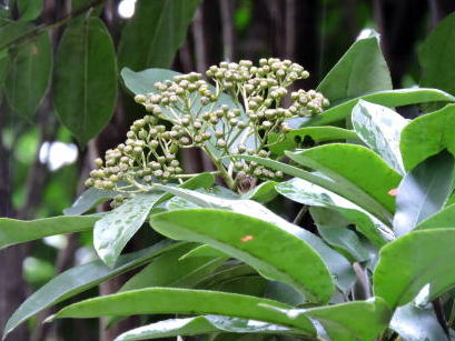 9月末、依然猛暑が続いていましたが、写真のとおり、青い幼果を見事につけ、散房状の白い花を想起させるような印象でした(1段目)。