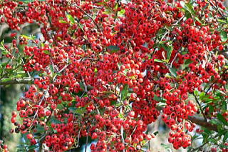 「日本の樹木(山と渓谷社)」では、ピラカンサとして、トキワサンザシ、タチバナモドキ、ヒマラヤトキワサンザシの3種類が記載され、果実の色をそれぞれ、鮮紅色、橙黄色、橙紅色または橙赤色としています。